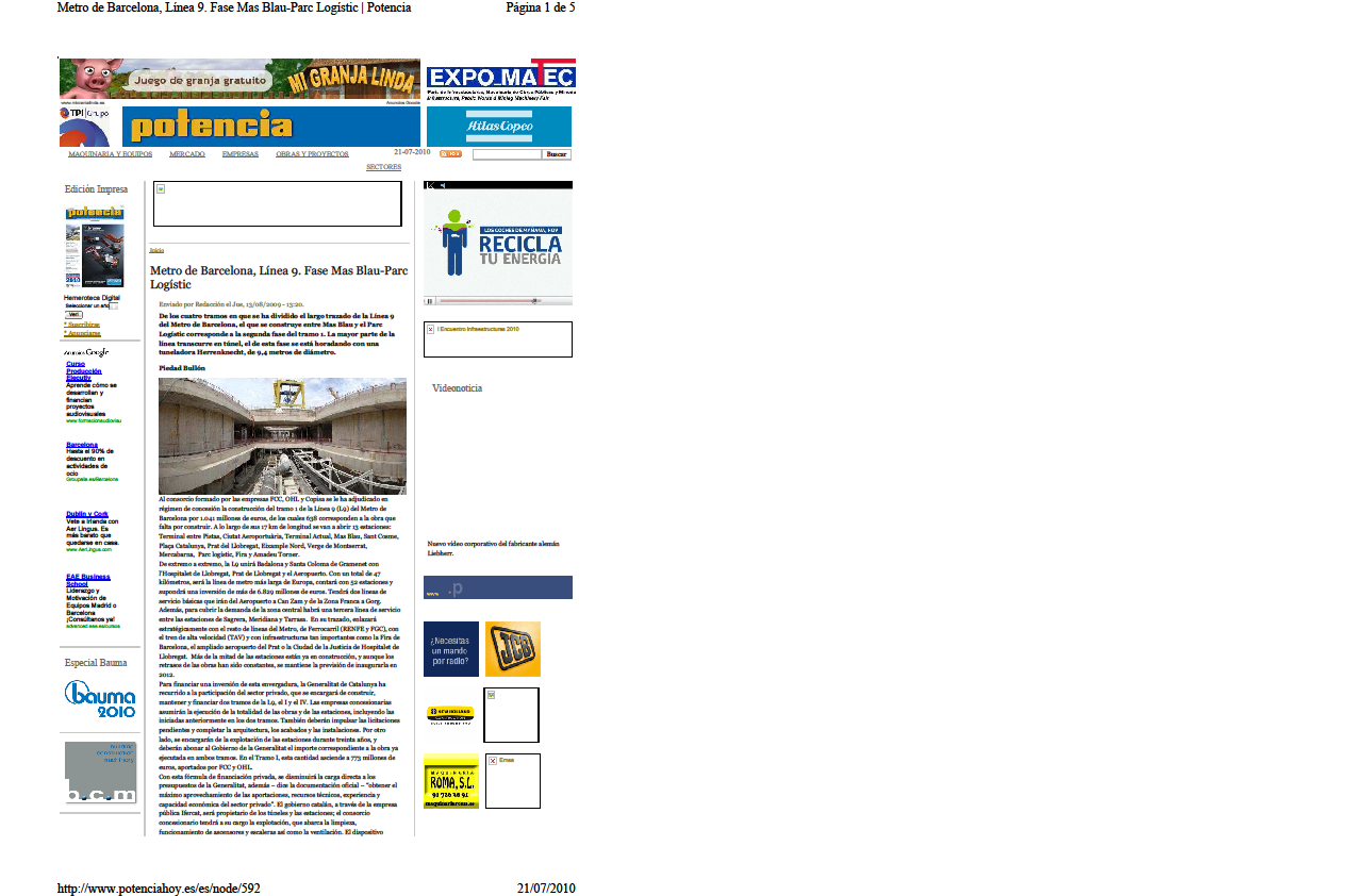 Al consorcio formado por las empresas FCC, OHL y Copisa se le ha adjudicado en régimen de concesión la construcción del tramo 1 de la Línea 9 (L9) del Metro de Barcelona por 1.041 millones de euros, de los cuales 638 corresponden a la obra que falta por construir. A lo largo de sus 17 km de longitud se van a abrir 13 estaciones: Terminal entre Pistas, Ciutat Aeroportuària, Terminal Actual, Mas Blau, Sant Cosme, Plaça Catalunya, Prat del Llobregat, Eixample Nord, Verge de Montserrat, Mercabarna, Parc logístic, Fira y Amadeu Torner.