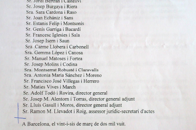 firman el acta que ayer mostró David Fernández a Narcís Serra en el Parlament… consejeros de CIU, PSC, ICV, CCOO y UGT, que entre otras prebendas