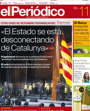 LA DIADA: hoy nos encontramos ante uno de los inventos secesionistas más cuidado y promocionado por PUJOL. Todo el dogma catalanista en la calle, con la pretensión de que el MUNDO, SORDO Y SATURADO DE REALES DESGRACIAS, les escuche dicen, o Madrid firme una INDEPENDENCIA DE CATALUÑA de imposible legal aceptación.
