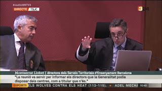 Barcelona 7-2-2017. TV3 retransmite la segunda jornada del juicio. Publicidad y partidismos aparte, hoy sin partir del Palacio de la Generalitat, el juicio se inicia a su hora las 9 de la mañana. Declaran altos cargos e inspectores de ENSEÑANZA, directores de instituto, y directora del CIRE que confecionó las cajas de cartón.